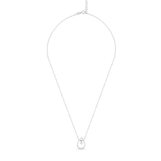 Silver Zircon Drop Necklace with Link Chain