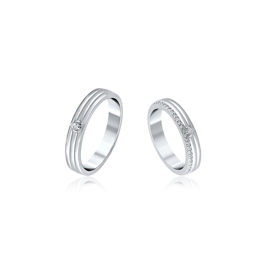 Silver Solitaire Couple Band